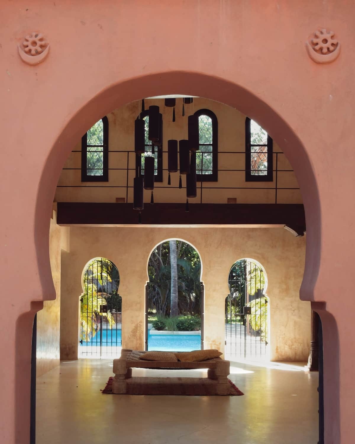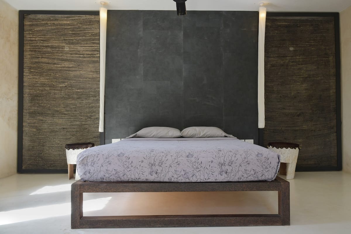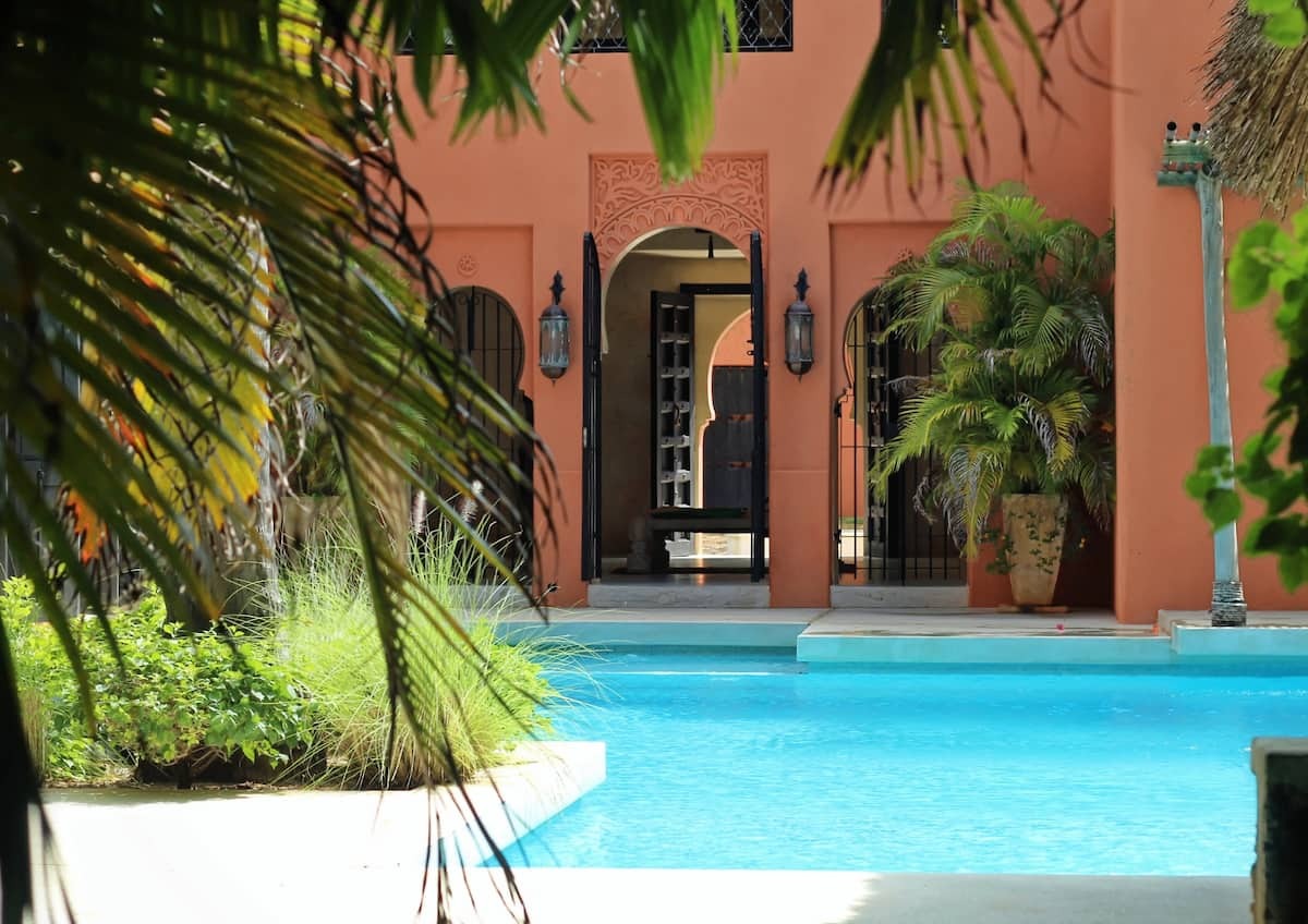Cette villa à Dabou est une retraite exotique aux accents marocains, nichée dans une végétation luxuriante. Façades ocre, arches sculptées et piscine turquoise s’ouvrent sur des chambres minimalistes en béton ciré, lits bas et moustiquaires vaporeuses. Salles d’eau rustiques aux niches intégrées, terrasse ombragée de palmes et paillote au bord d’un bassin naturel : un havre zen où l’architecture organique fusionne avec la nature tropicale.