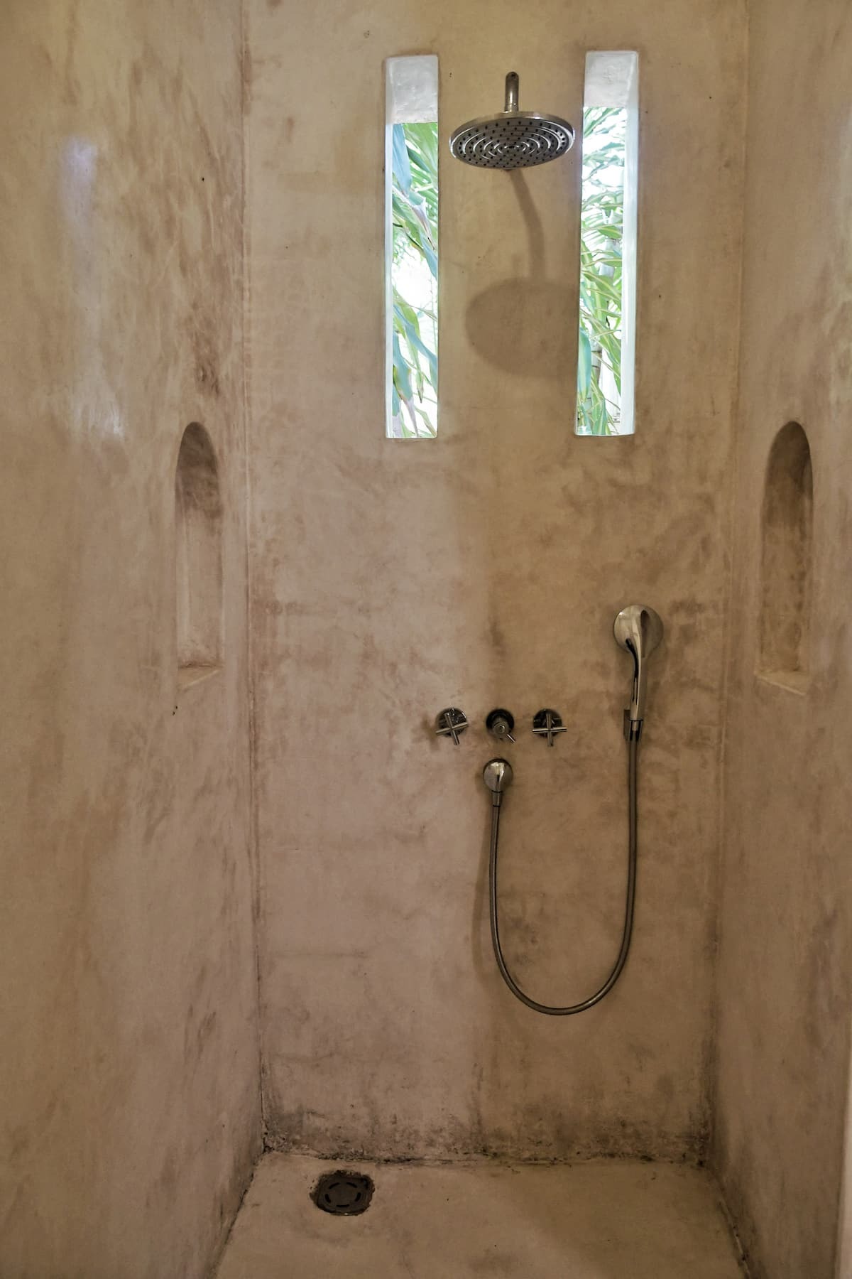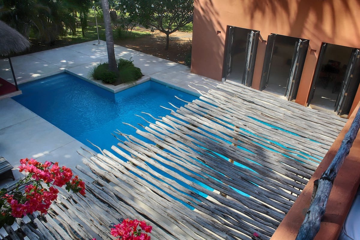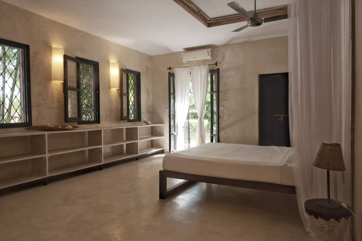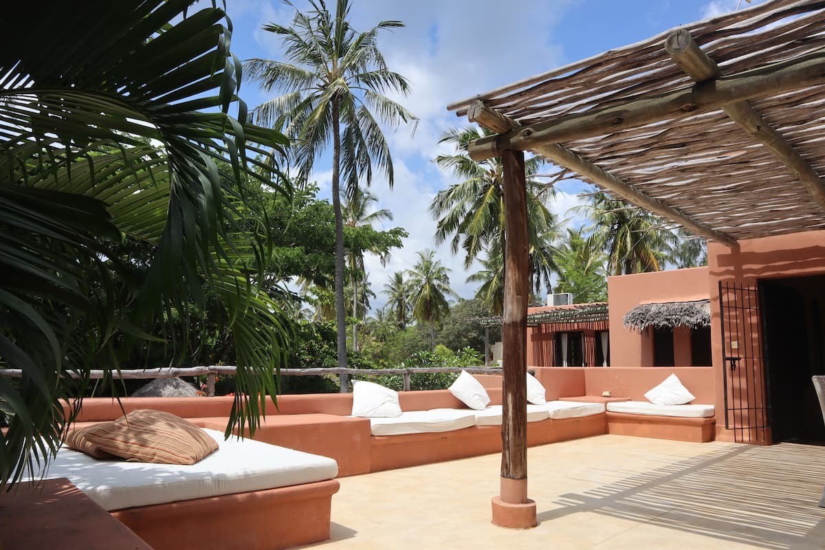 Cette villa à Dabou est une retraite exotique aux accents marocains, nichée dans une végétation luxuriante. Façades ocre, arches sculptées et piscine turquoise s’ouvrent sur des chambres minimalistes en béton ciré, lits bas et moustiquaires vaporeuses. Salles d’eau rustiques aux niches intégrées, terrasse ombragée de palmes et paillote au bord d’un bassin naturel : un havre zen où l’architecture organique fusionne avec la nature tropicale.
